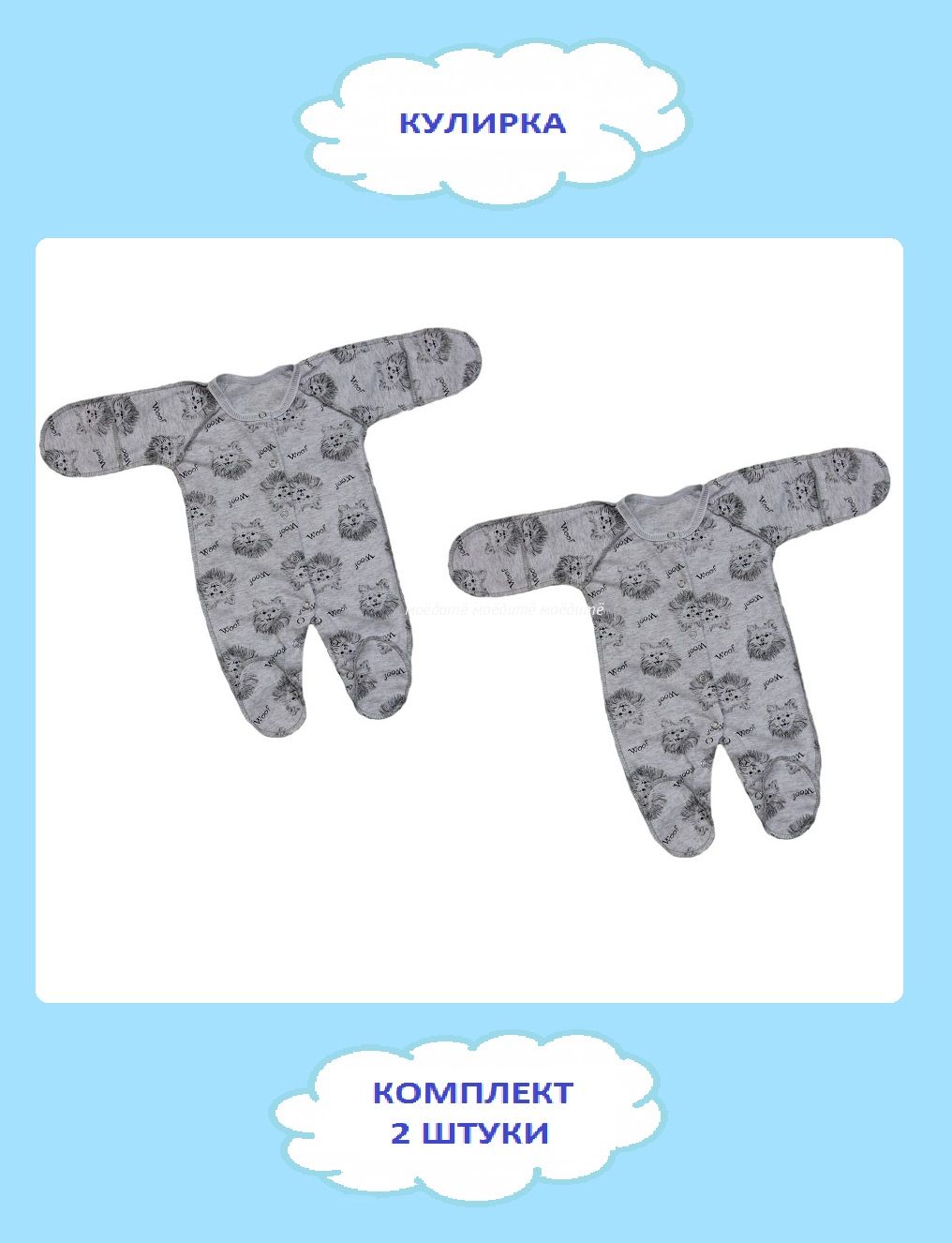 "МоёДитё" комбинезон со швами наружу "Гардения" КК007 "Собачки" серый в Стерлитамаке